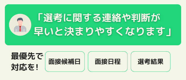 「携帯で常に連絡がとれると候補者者からの質問や日程調整に早く対応できるので助かります。順調に選考が進むと、採用確率も高くなると思います」