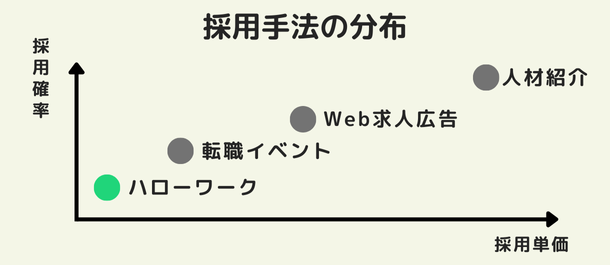 エリアや職種によっては、ハローワークだけでは応募が集まらないケースも考えられます。一方、人材紹介は採用できる確率は高いですが、採用費用も高くなります。採用手法は複数組み合わせることで求職者へのアプローチの幅が広がり、多くの応募が集まりやすくなるでしょう。